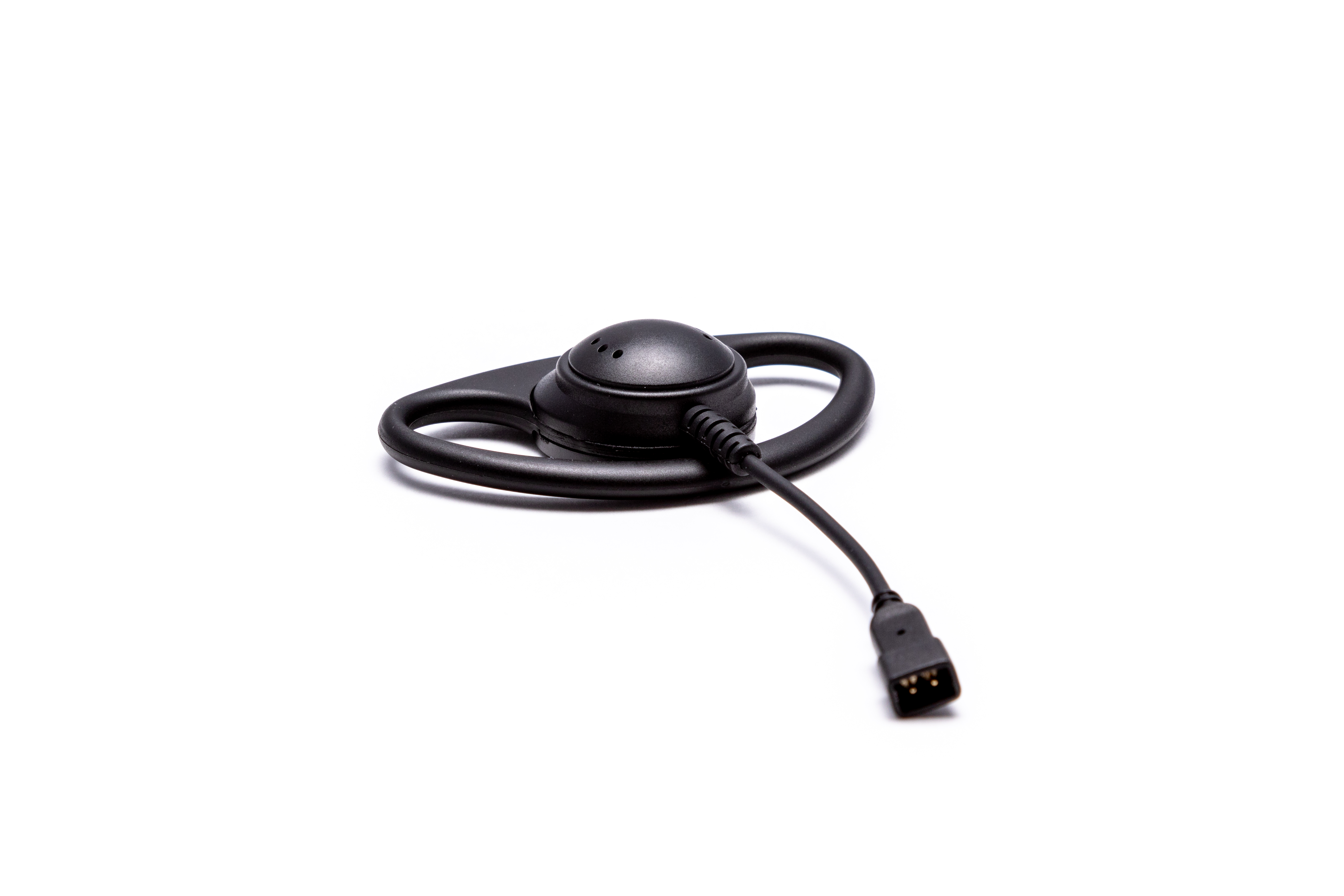 The D-2 earpiece is a large, on-the-ear speaker with soft rubber. D-shaped ear loop and is a replacement earpiece for Gold Series G1W, G2W, GLO and GRSMA cables.