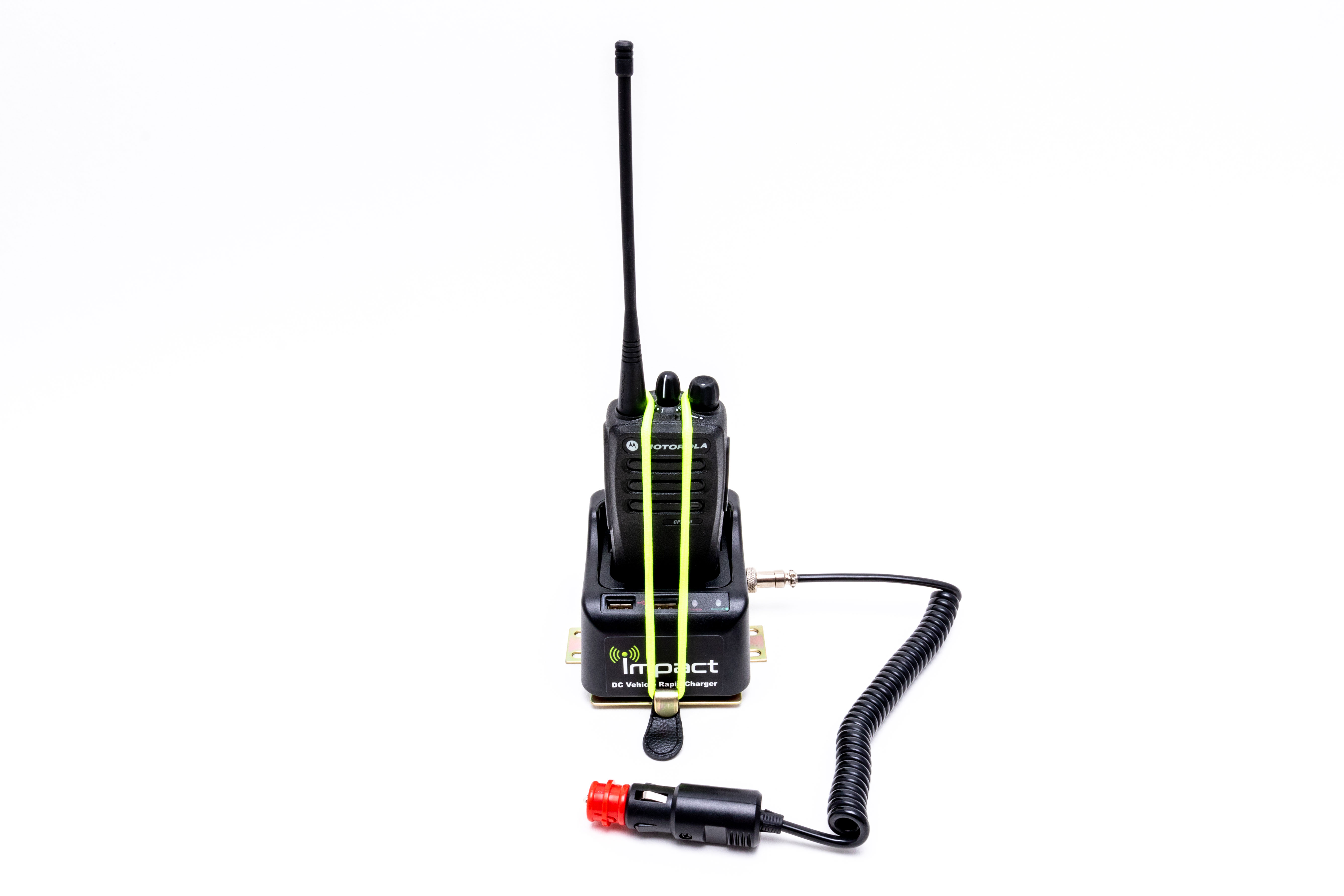 This universal single rapid vehicle two-way radio battery charger with two USB ports is the ideal solution for charging your portable on the go! Perfect for forestry, public safety, and disaster relief. Includes charger cup, cigarette lighter power cable and mounting bracket with radio restraint strap.